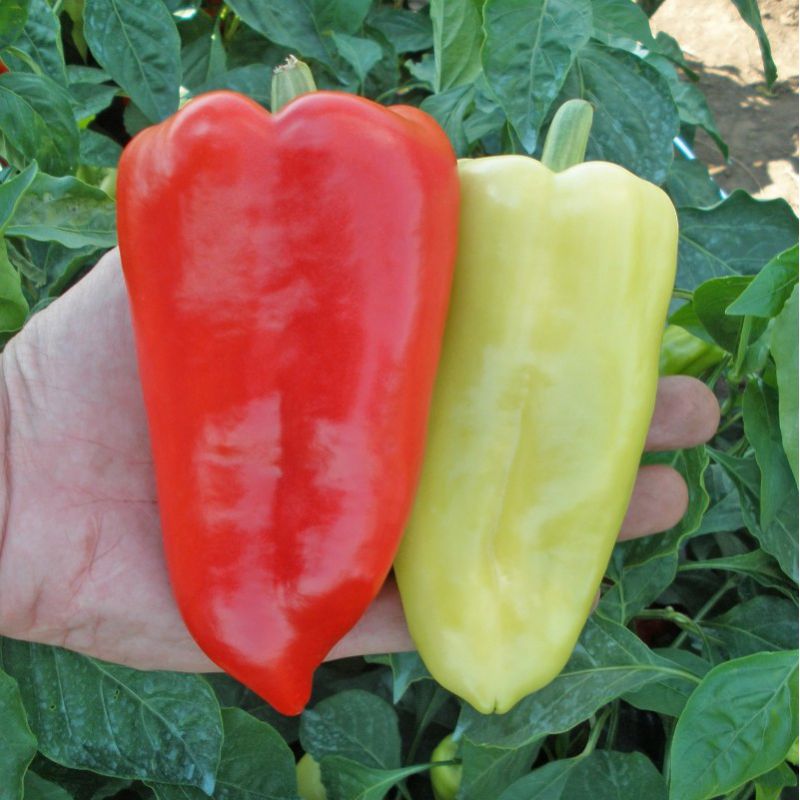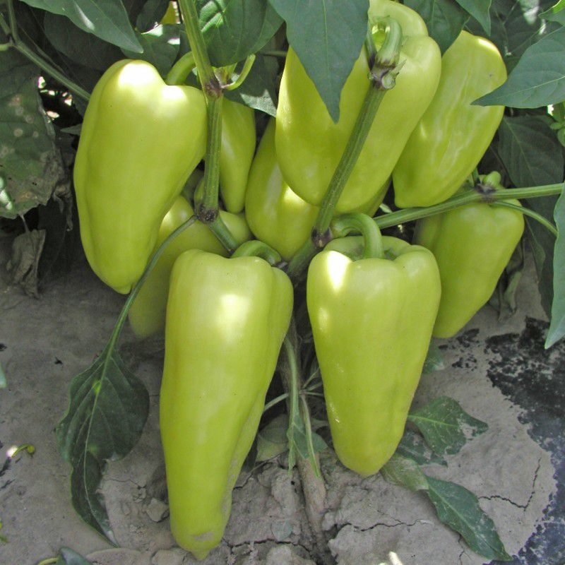 Плод привлекательный, конусовидный, имеет блестящую поверхность, длиной до 13 см. Светло-зеленая окраска меняется на красную. Стенка толщиной до 4 мм. Острый вкус.