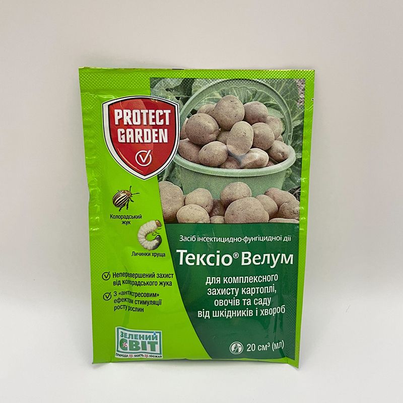 Протравитель Тексио Велум (Престиж) 29% – препарат, который предназначен, чтобы протравливать картофель перед посадкой и замачивать корни овощных культур, а также саженцев. Препарат борется с колорадским жуком, грунтовыми вредителями, заболеваниями во время всего вегетационного периода.