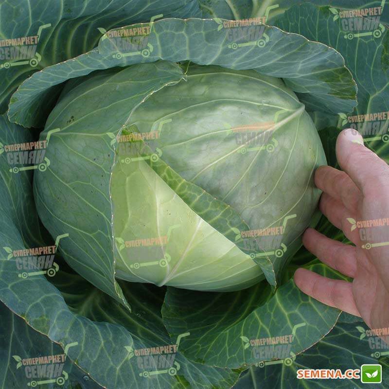 Плод большой, клоскоокруглый, массой до 5 кг. Внутренняя структура плотная, белая, короткий внутренний кочан. Нежный, сладкий вкус.