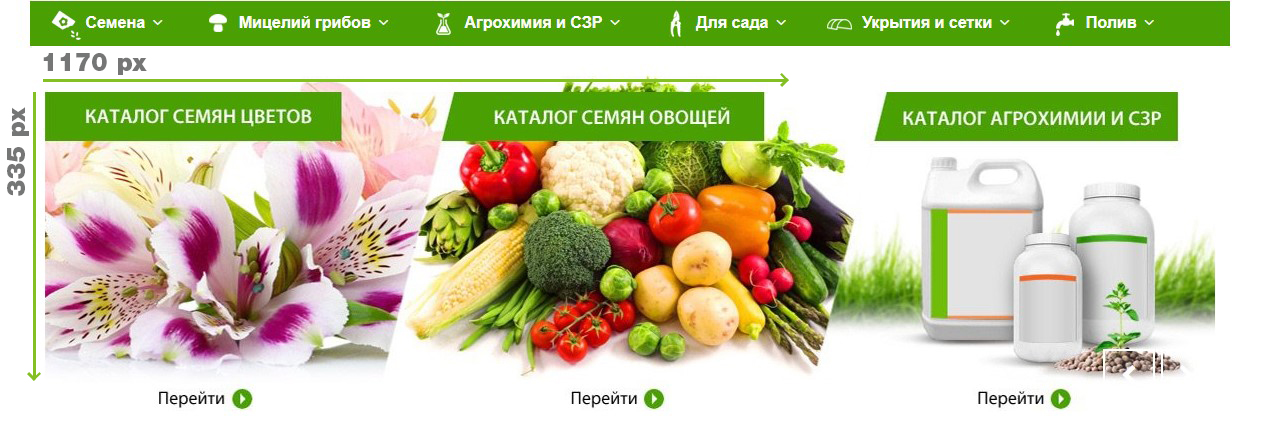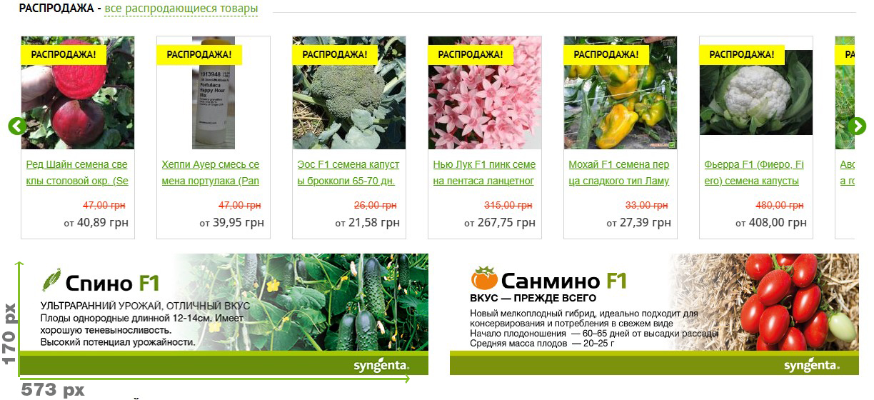 2. Второй баннер слайд-шоу на главной странице сайта semena.cc (под строкой "Выбор покупателей")