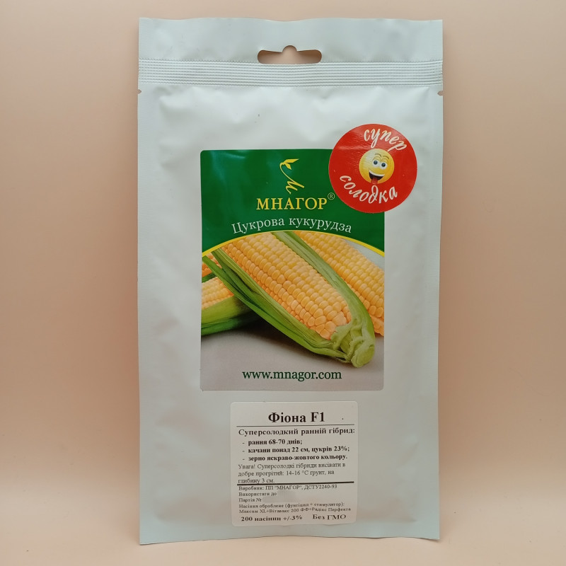 Фіона F1 — це ранній гібрид суперсолодкої кукурудзи типу Sh2. Призначений для свіжого ринку, консервування, заморожування та домашнього вирощування.