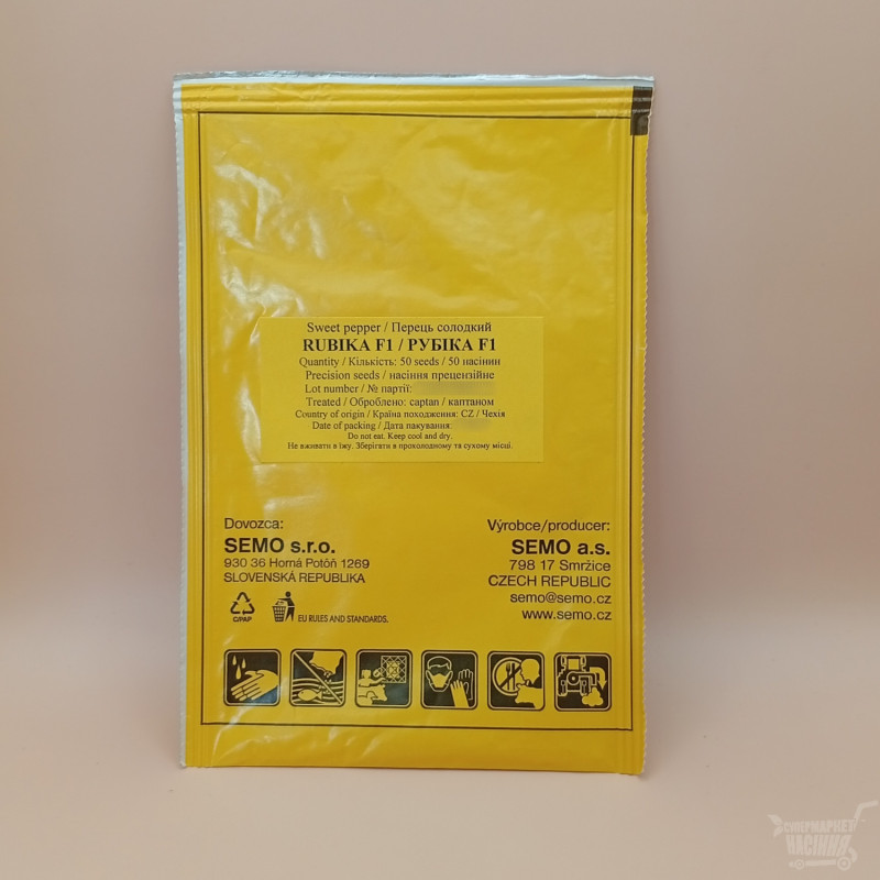 Рубіка F1 - гібрид перцю солодкого. Є середньораннім, продуктивним, середньорослим. Вегетаційний період 65 - 75 днів. Плід кубовидний, темно-зелений / темно-червоний, стінка товщиною в 6 мм. Має високі смакові якості. Не довго зберігається і не далеко транспортується. Вирощувати в теплицях, відкритому грунті. Віддає перевагу південному регіону.