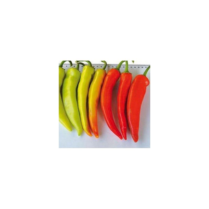 Перець конічного типу, з твердими стінками, в біологічній стиглості червоного кольору, в технічній - жовтого. Вага плоду 25-30 грам, довжиною 20-25 см.