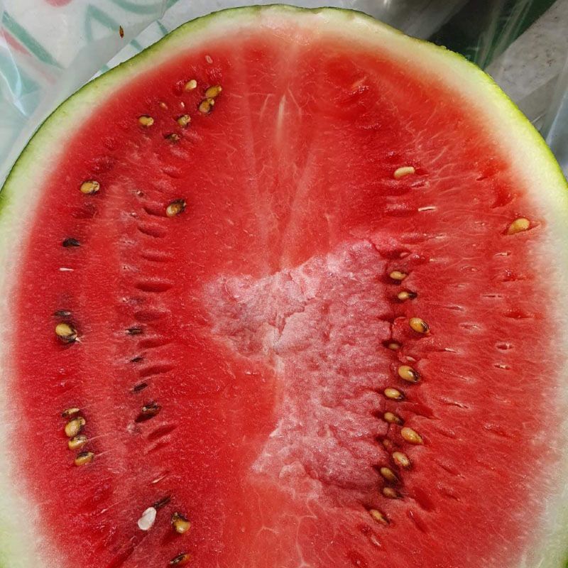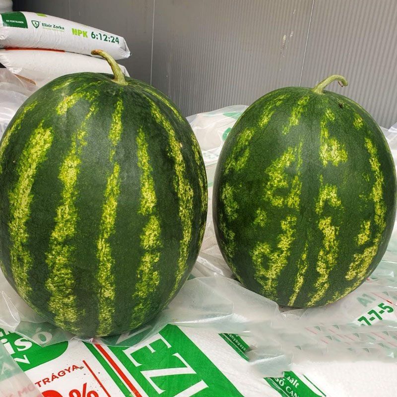 Характеристика плодів – Плоди округлої форми, темно-зелені смуги на зеленому тлі. М'якоть яскраво-червона, щільна, хрустка, суперсолодка. Середня вага плоду: 10-12 кг. Товщина стінки оптимальна.