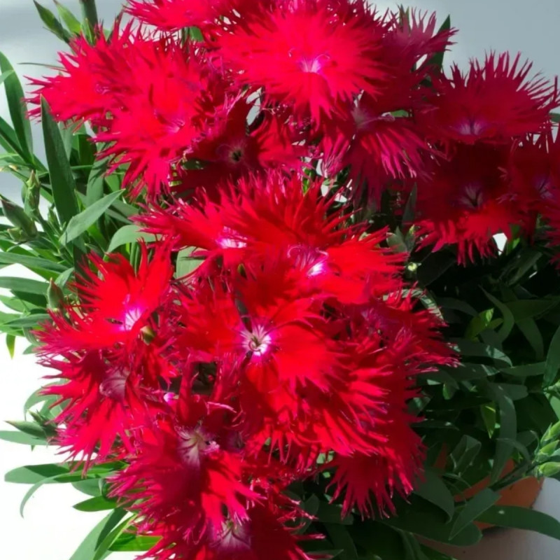 Висота в горщику 15-20 см, ширина – 20-25 см. Ажурні квіти яскравих кольорів. Зацвітає через три місяці після посіву.