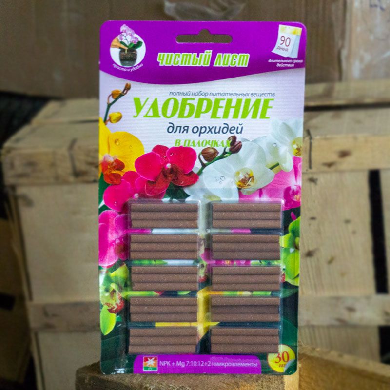 Чистий лист (для орхідей) - дане добриво представлено у вигляді паличок. Є препаратом з тривалою дією. Забезпечує повноцінне підживлення усіма необхідними мікро- і макроелементами протягом 3-х місяців. Своїм впливом покращує ріст і формування рослин, також покращує зовнішній вигляд.