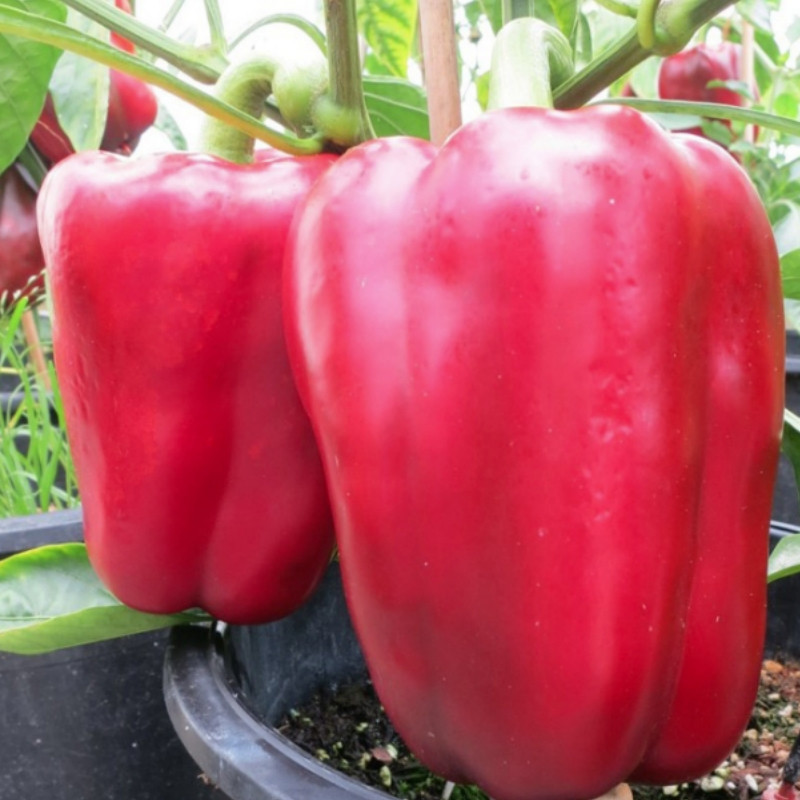 Перець 4-х камерний, масою 200-250 грам. Перець в технічно стиглості темно-зелений, в біологічній червоний з малиновим відтінком.