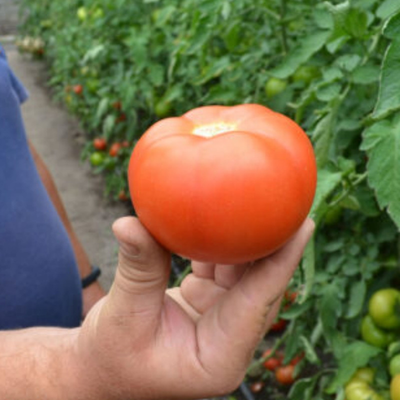 Округлі плоди, приголомшливі за смаком, вагою 180-200 грам, гарного червоного кольору, без зеленої плями, багатокамерні, щільні.