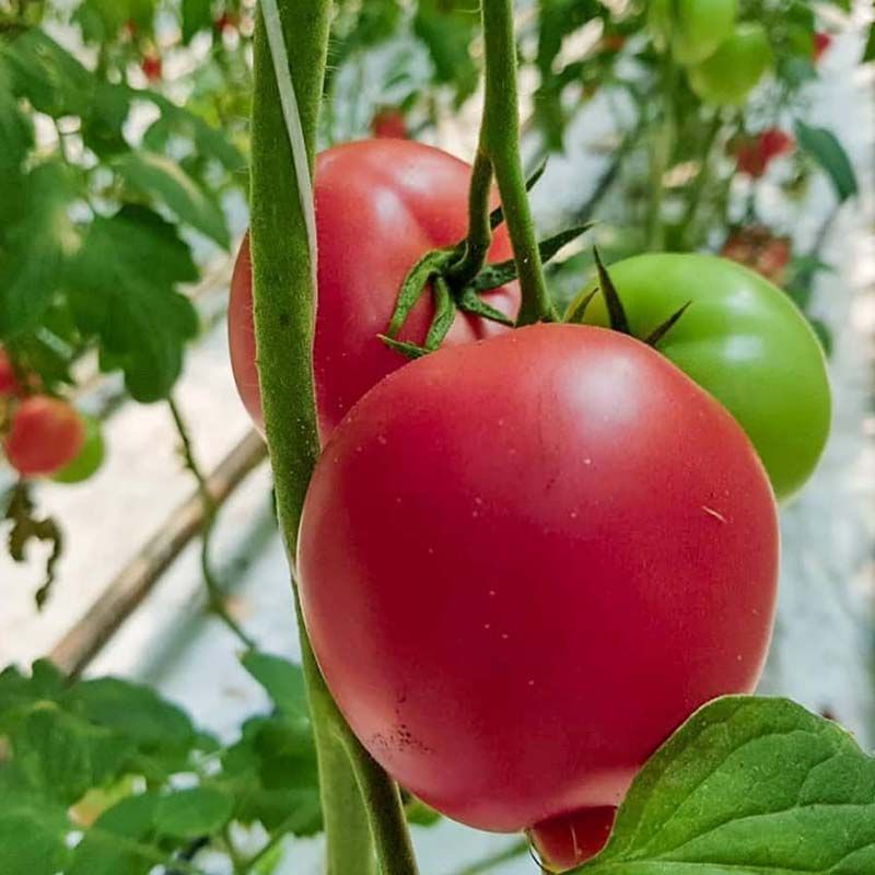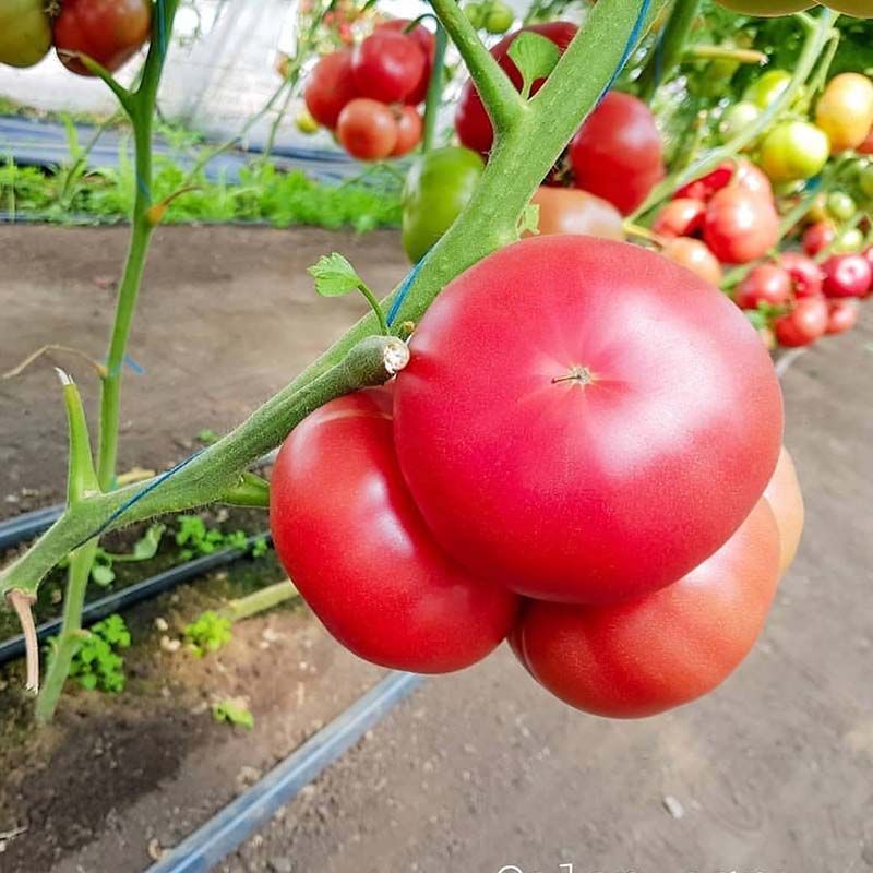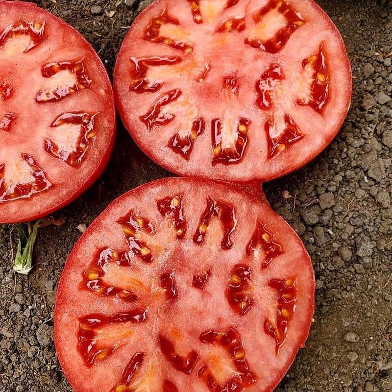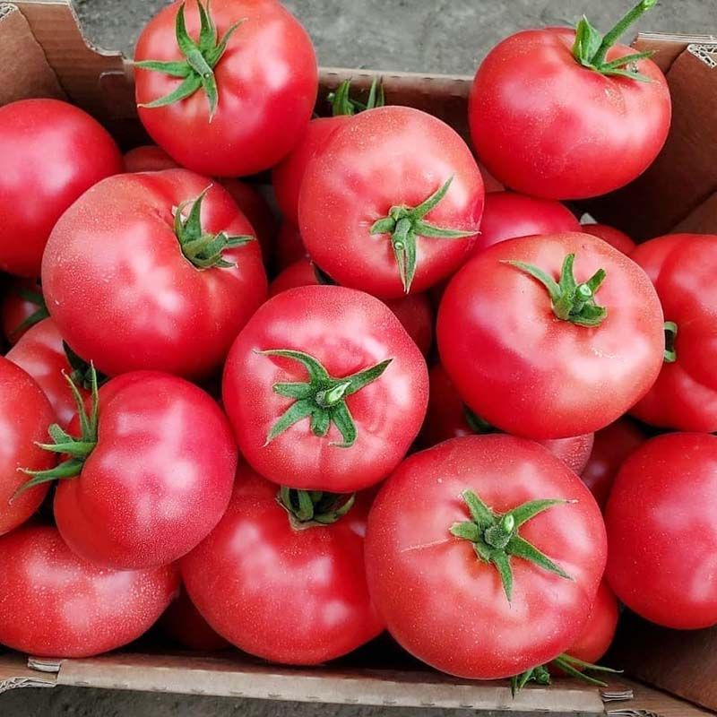 Характеристика плодів – Округлі плоди, приголомшливі за смаком, вагою 200-250 г, красивого рожевого забарвлення, без зеленої плямочки, багатокамерні, щільні.