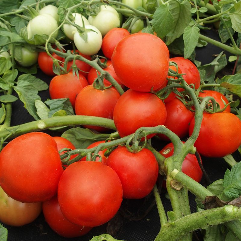 Округлі плоди, приголомшливі за смаком, вагою 85-95 грам, гарного червоного кольору, без зеленої плями, багатокамерні, щільні.