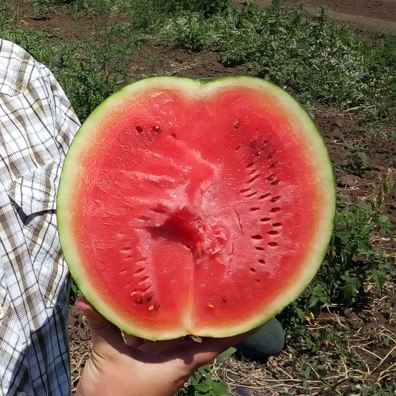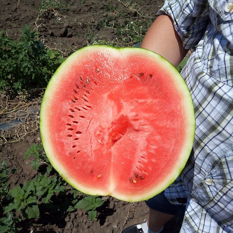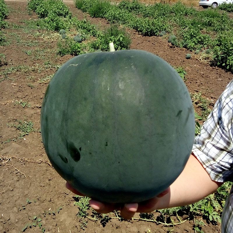 Характеристика плодів – Плоди округлої форми, темно-зеленого забарвлення з щільним восковим нальотом, масою 6-10 кг, транспортабельні. М'якуш темно-червоний, дуже солодкий, ніжної структури.