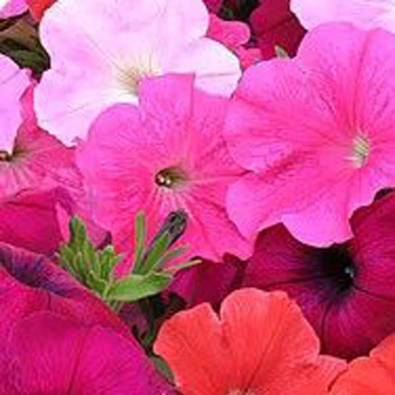 Каскадна багатоквіткова петунія, добре гілкується і повністю покривається масою великих квітів