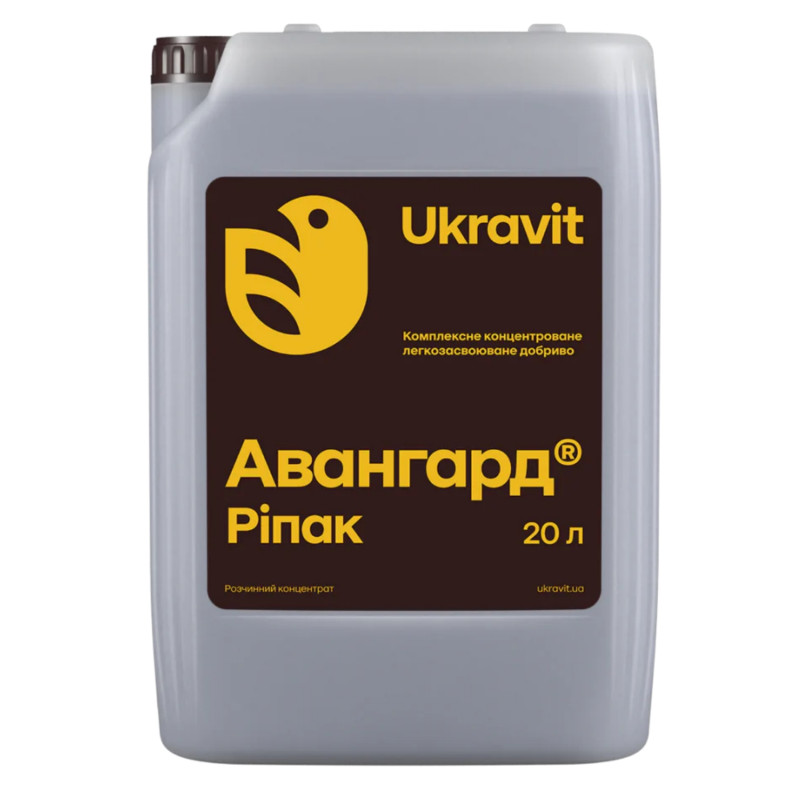 Ріпак Авангард - це комплексне і концентроване добриво з доступним складом мікро-, мезо- і макроелементів. Використовується для перед посівної обробки насіннєвого матеріалу і для поза кореневого внесення. Своєю дією препарат покращує обмінні процеси на клітинному рівні, підвищує схожість насіння і розвиток кореневої системи. Підсилює природний імунітет рослин перед захворюваннями і стресовими погодними умовами. В середньому підвищує врожайність на 10-15%. Може поєднуватися з багатьма видами ЗЗР. Середня норма витрати робочого розчину препарату становить 200-300 л / га.