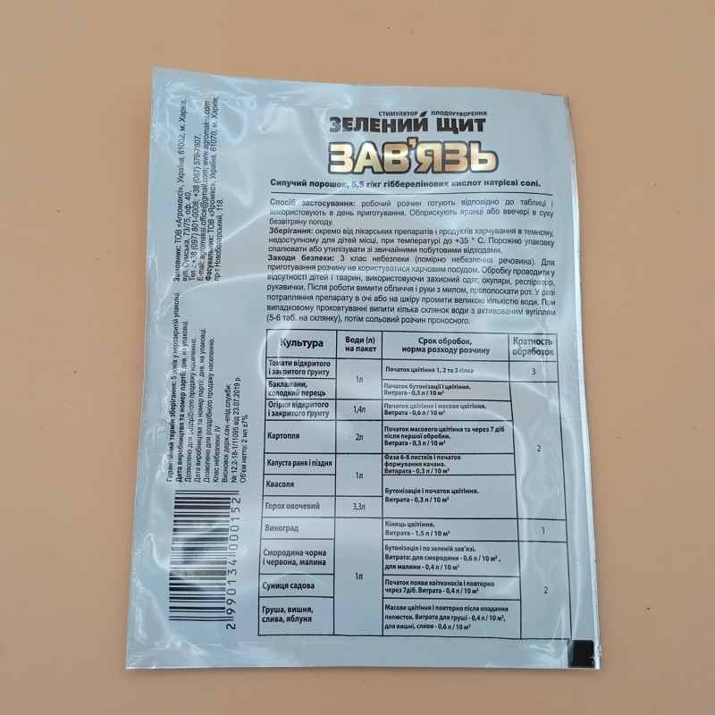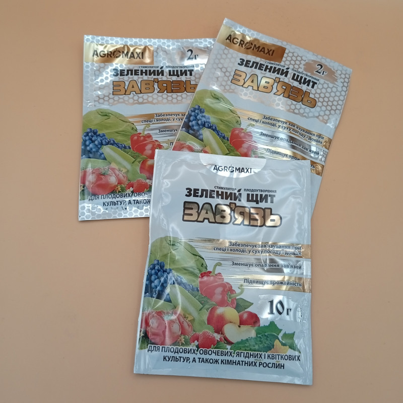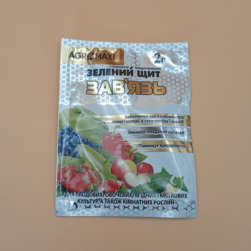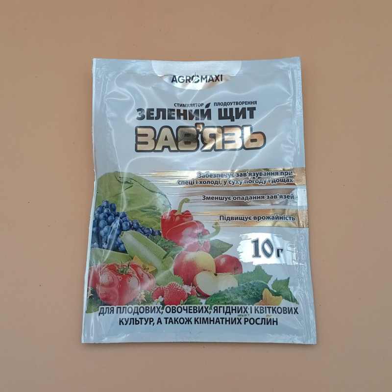 Зелений щит Зав'язь - даний стимулятор росту використовується для підвищення формування плодів овочевих культур.