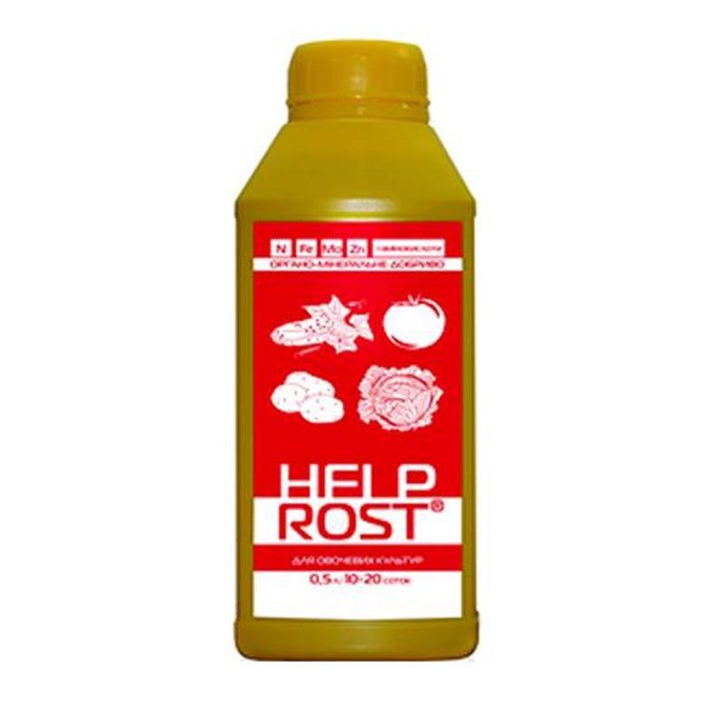 ХелпРост для овочевих - це добриво є органо-мінеральних. У складі препарату є мікро- і макроелементи в хелатній формі. Також в складі знаходяться амінокислоти, полісахариди і вітаміни з групи В. Своїм впливом препарат покращує природну стійкість рослин перед стресовими погодними умовами і захворюваннями. Також покращує ріст і розвиток. Добриво характеризується як безпечний препарат для корисних комах і теплокровних. Може поєднуватися з багатьма добривами і пестицидами, але перед кожним суміщенням слід проводити тести на сумісність.