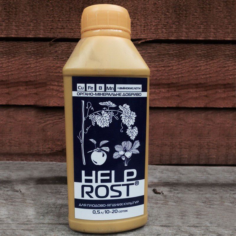 ХелпРост для плодово-ягідних - це добриво використовується для поліпшення якостей і умов формування врожаю плодово-ягідних культур. Своїм впливом препарат підвищує ріст і розвиток рослин. Підсилює природний імунітет перед стресовими погодними умовами і захворюваннями. Також значною мірою поліпшується зав'язування і дозрівання плодів. У складі є мікро- і макроелементи в хелатній формі, а також амінокислоти, полісахариди і вітаміни з групи В.
