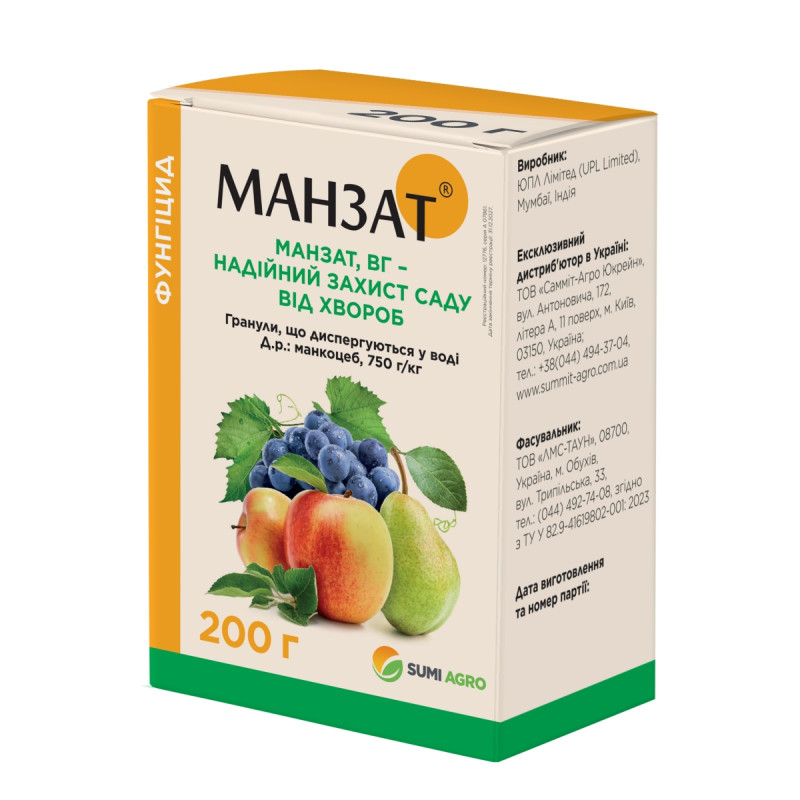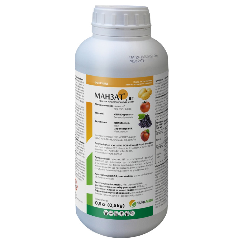 Контактний фунгіцид захисної дії, що призначений для захисту сільськогосподарських культур від збудників широкого спектру хвороб (парша, мілдью, фітофтороз та альтернаріоз).