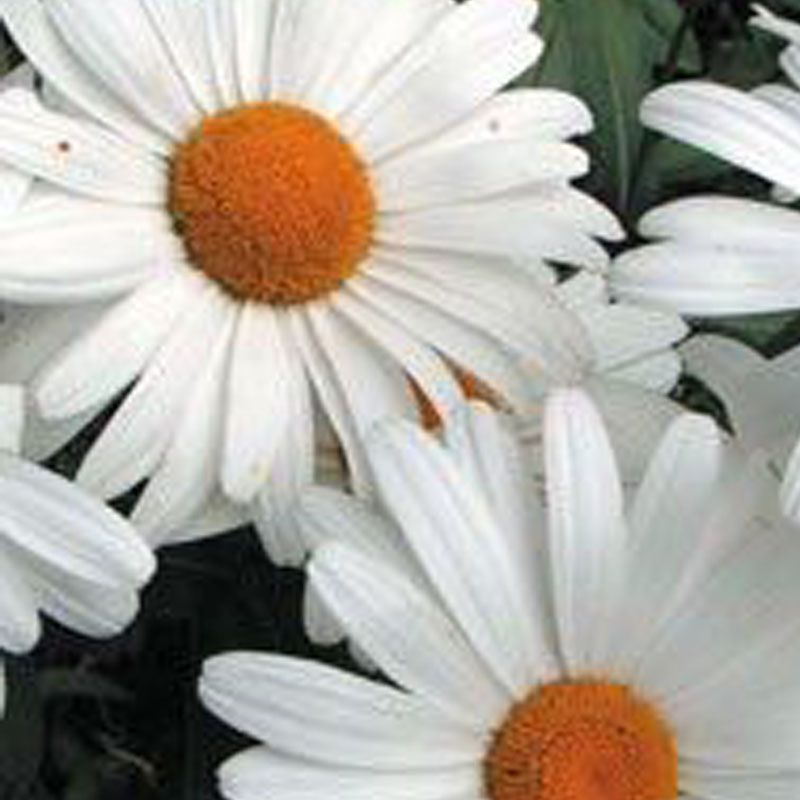 - Чисто білі квіти з яскраво-жовтим центром і темно-зеленим листям