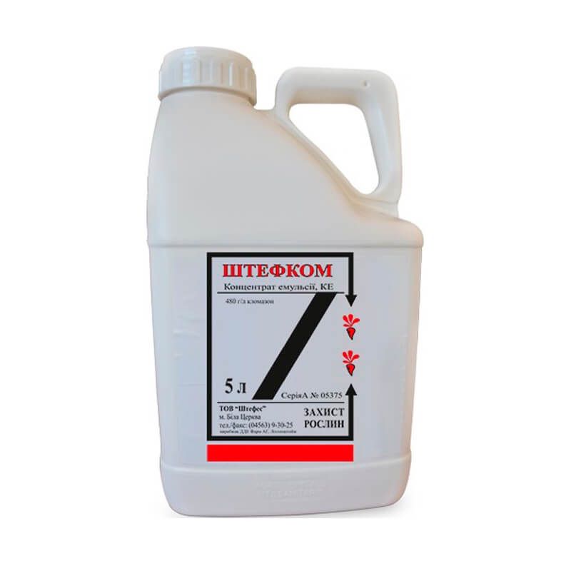 Штефком - гербіцид призначений для боротьби з дводольними та злаковими бур'янами. Застосовується шляхом зрошенням грунту до того як з'явиться сходи культур.