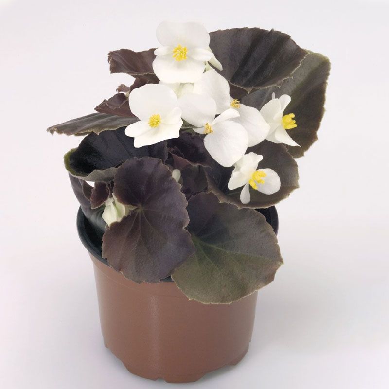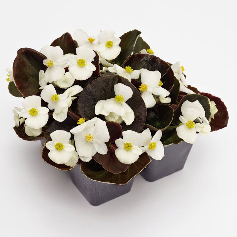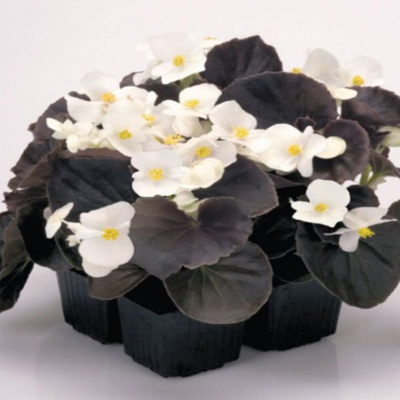 Бегонія Найтлайф F1 біла (Nightlife F1 White) - багаторічна квітка з ультраранньої серії з бронзовим листям і великими квітами білого забарвлення.