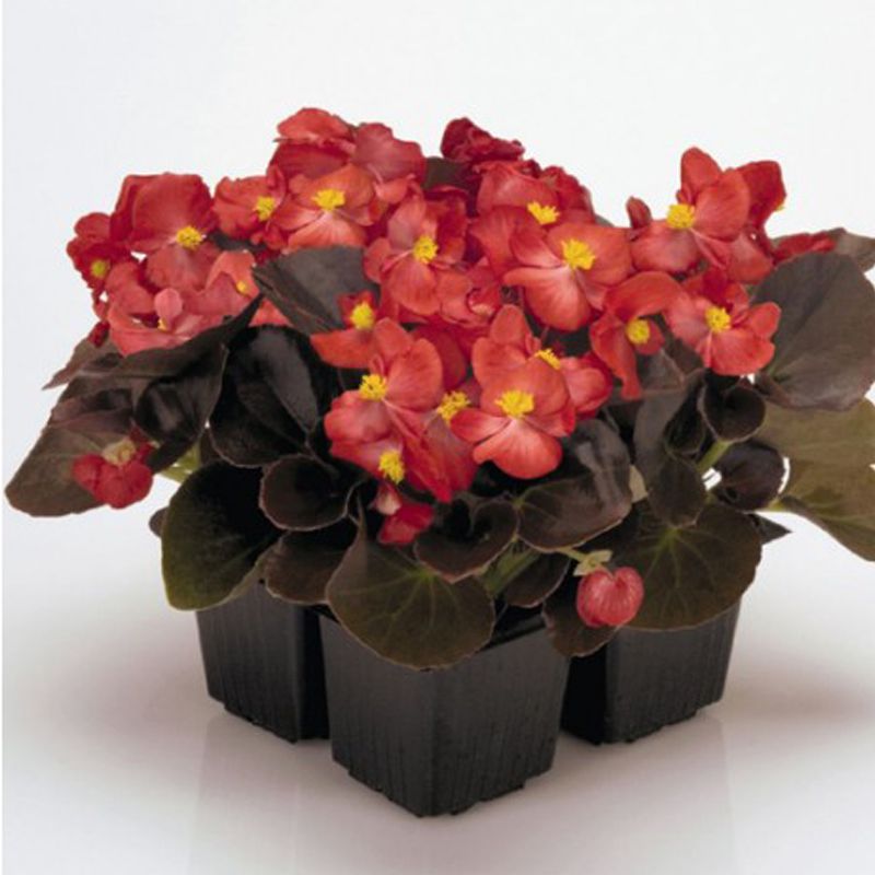 Бегонія Найтлайф F1 червона (Nightlife F1 Red) - багаторічна квітка з ультраранньої серії з бронзовим листям і великими квітами червоного забарвлення.