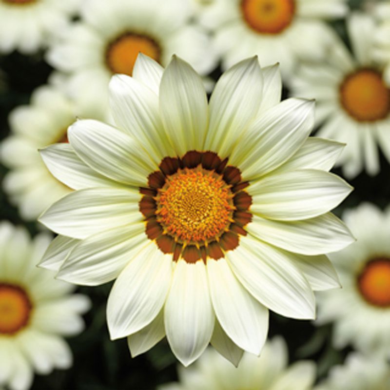 На сонячних клумбах квіти газаніі створюють незабутні колірні акценти.