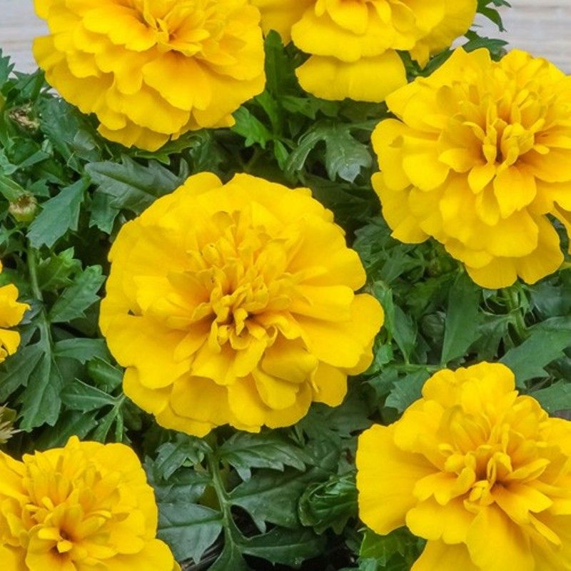 Чорнобривці Чіка лимонна - ранньоквітуча серія з великими махровими квітами лимонного кольору.