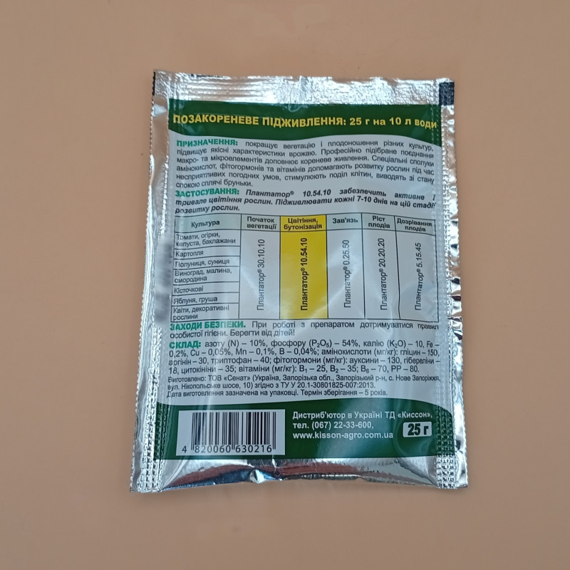Плантатор (10-54-10) - дане добриво використовується на етапі цвітіння культурних рослин.