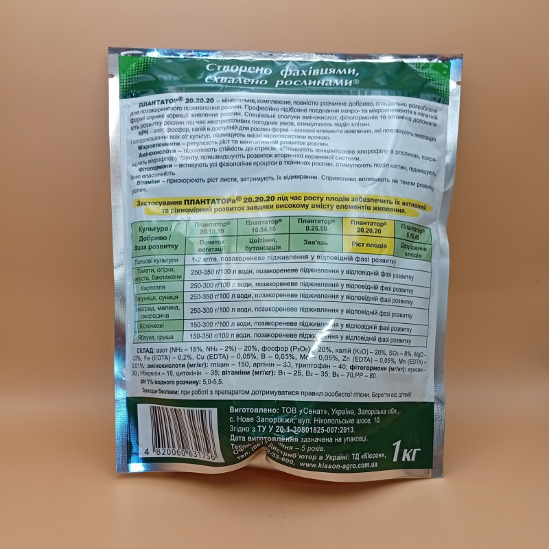 Плантатор 20-20-20 - це розчинне, мінеральне добриво, призначене для позакореневого підживлення рослин.