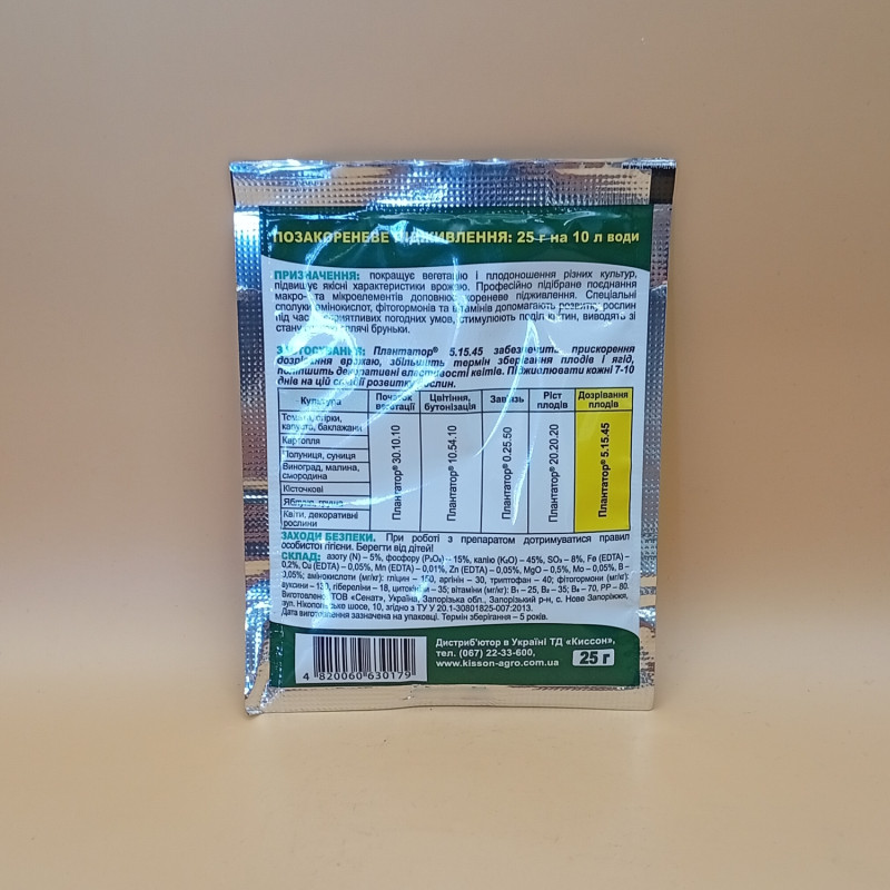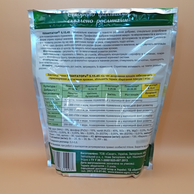 Плантатор (5-15-45) - дане добриво використовується для позакореневого підживлення культурних рослин в момент дозрівання врожаю.