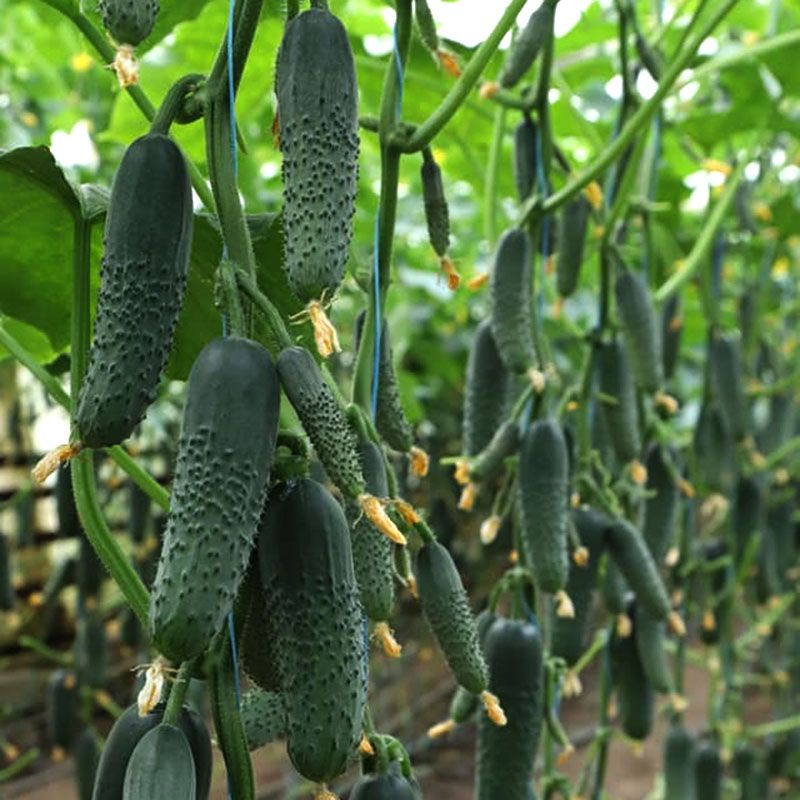 Характеристика плодів – Плоди однорідні, крупнобугорчасті, темно-зеленого кольору, в одній пазусі формується 3-5 плодів довжиною 12-14 см. Якість і форма плоду не змінюються від початку і до кінця плодоношення. Генетично відсутня гіркота плодів.