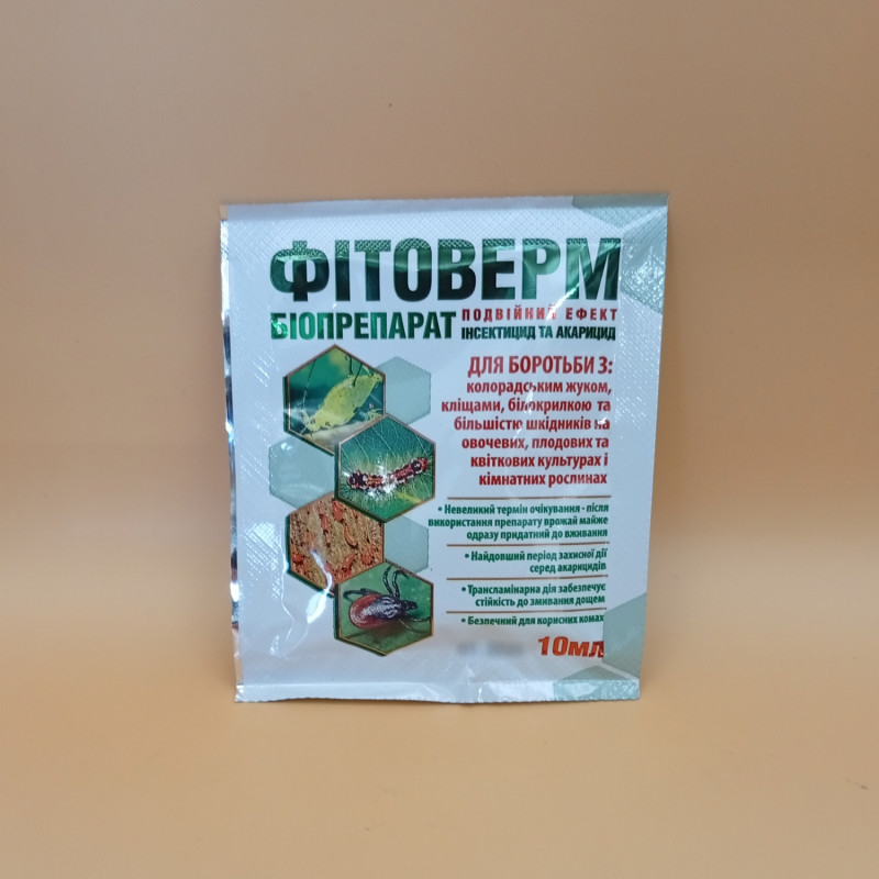 Фітоверм – ефективний біологічний інсекто-акарицид, розроблений спеціально для захисту кімнатних рослин від широкого спектру шкідників. Він бореться з попелицею, щитівками, білокрилками, павутинним кліщем та трипсами.