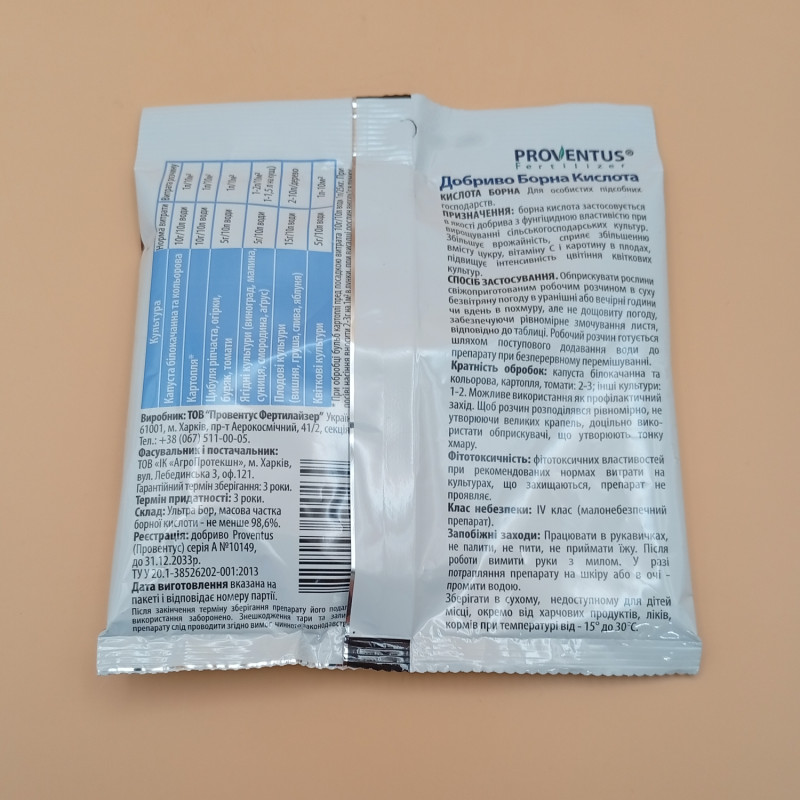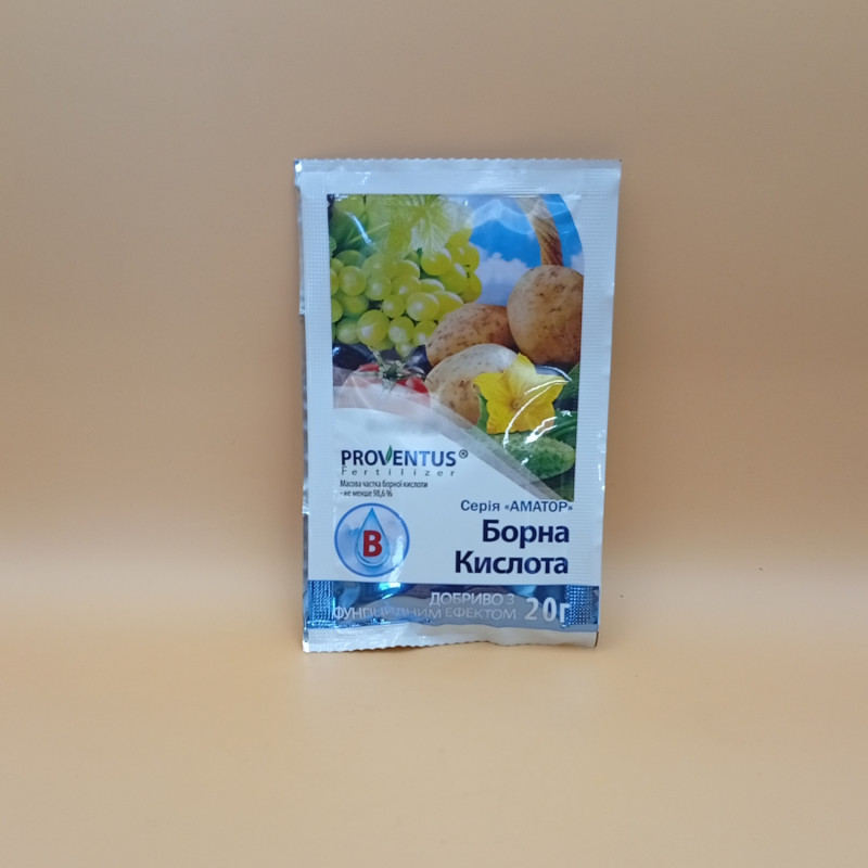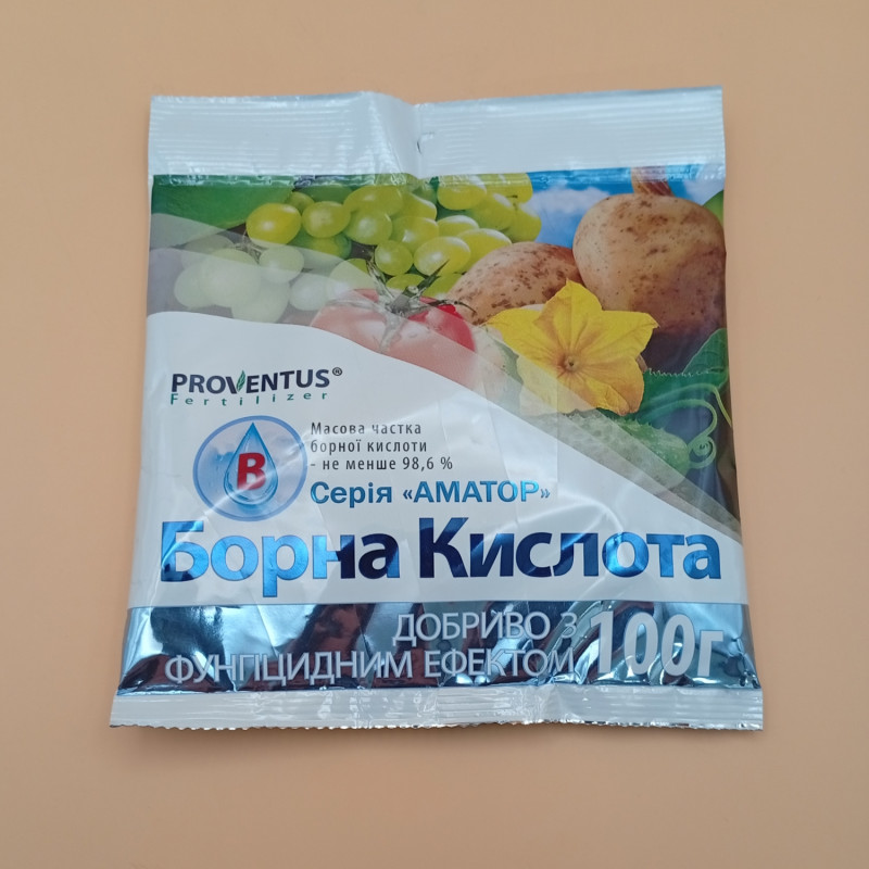 Борна кислота Провентус - даний препарат своїм впливом покращує якість і кількість кінцевої продукції. Використовується на багатьох овочевих, плодових, ягідних і квіткових культурах.