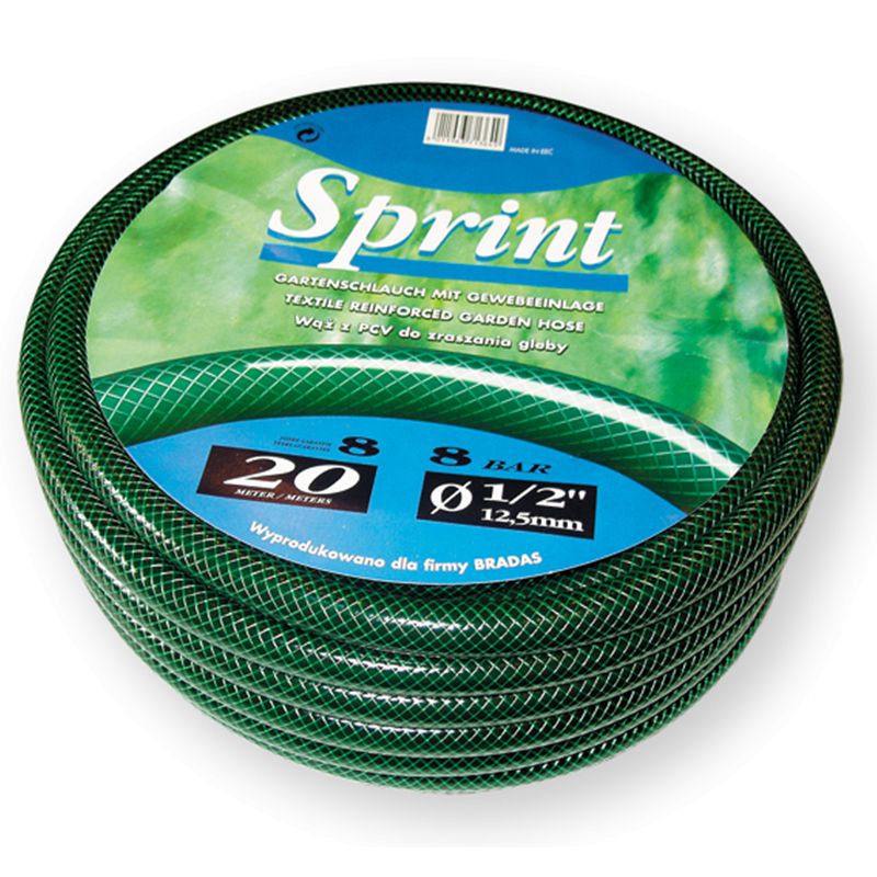 Поливальний шланг SPRINT складається з трьох шарів. Внутрішній шар - чорний, стійкий до ультрафіолету ПВХ. Не схильний до інтенсивного наростання водоростей на внутрішній стінці шланга. Армування - хрестова оплетка поліестеровими нитками. Зовнішній напівпрозорий ПВХ шар, перешкоджає стирання шланга.