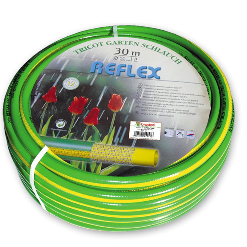 TRICOT REFLEX - п'ятишаровий армований садовий шланг. Даний шланг виготовлений з м'якого ПВХ з підвищеною стійкістю до тиску води. Обшивка зводить до мінімуму скручування шланга.