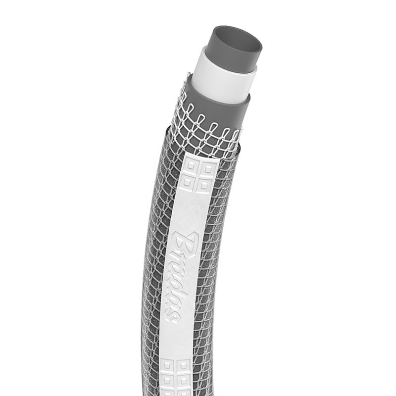 Поливальний шланг NTS WHITE SILVER - п'ятишаровий, армований шланг, впроваджена система NTS - протизгинання. Шланг виготовлений з ПВХ нового покоління, що не містить токсичних речовин. Зберігає гнучкість при низьких температурах. Характеризується стійкістю до високого тиску води.