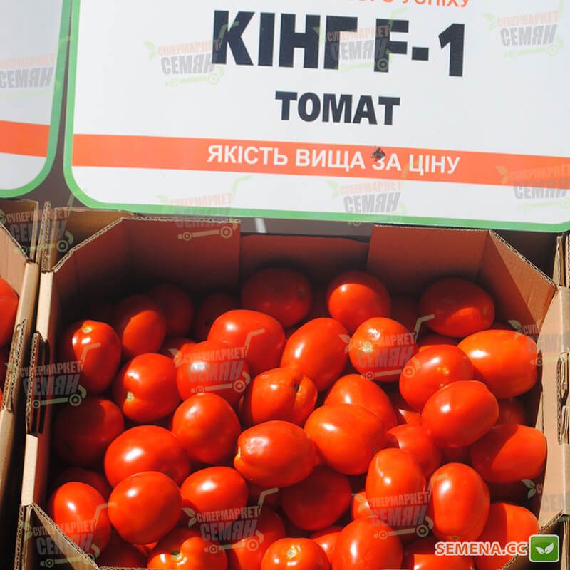 Конкурентні переваги – Добре зберігається і транспортується. Найвища продуктивність і чудова якість плодів томата Кінг F1. Урожайність – понад 100 т/га. Дружне зав'язування плодів у жарких умовах.