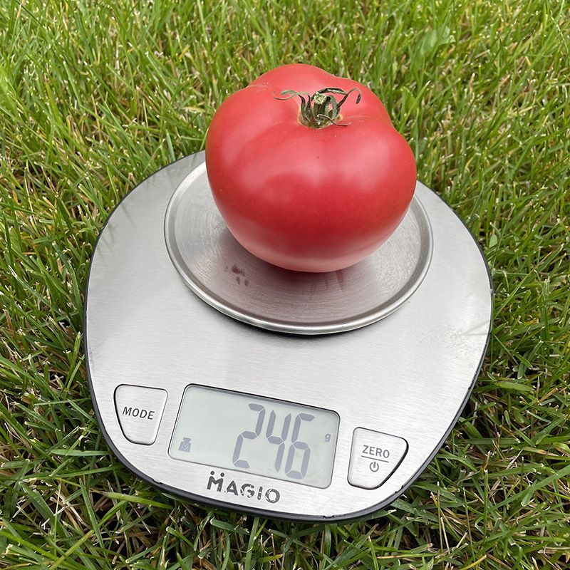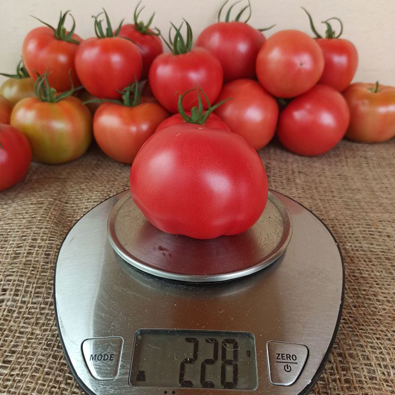 Характеристика плода – Плоди округлі, злегка плескаті, насиченого рожевого кольору. Вага плоду – 200-220 г. М'якоть середньої щільності, з високим вмістом сухих речовин (brix – 7,5). Насіннєві камери невеликі, із середньою кількістю насіння і рідини.