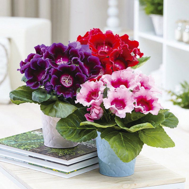 Глоксинія Аванті F1 чудово виглядає в кашпо та контейнерах у літній період.