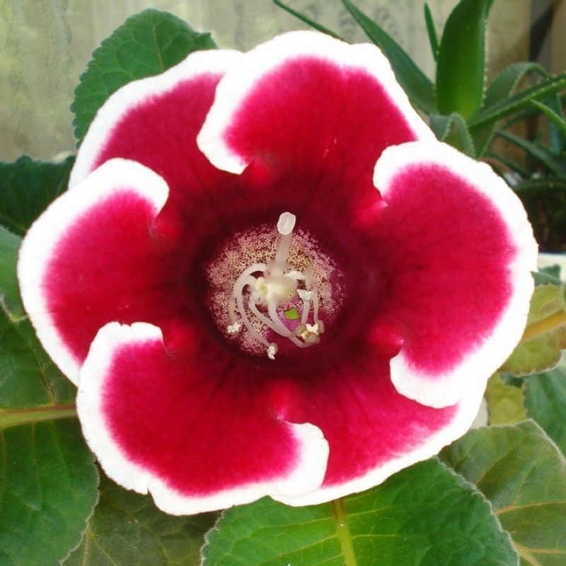 Глоксинія Аванті F1 червона з обідком - гібрид ранньої глоксинії. Кущ формується компактного розміру, висотою 20-25 см.