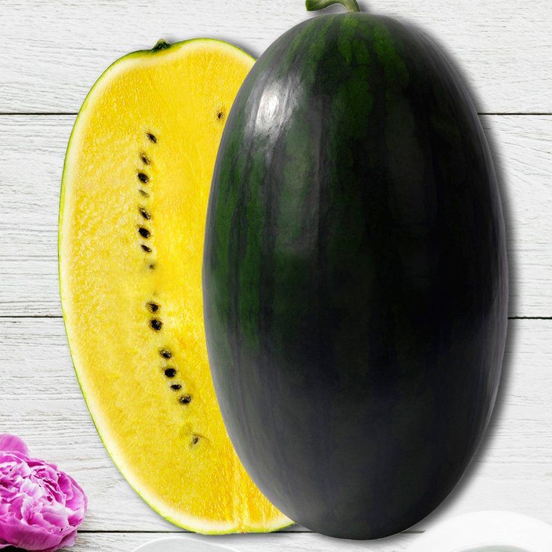 Гібрид кавуна типу шуга бебі з привабливою жовтою м'якоттю.