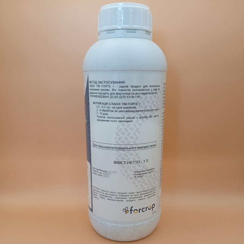 Радикс ТІМ Форте плюс - біостимулятор коренеобразуючий. В основі препарату лежить оптимальне співвідношення макро- і мікроелементів. Також є вільні амінокислоти і коренеобразуючий агент.