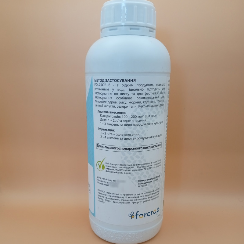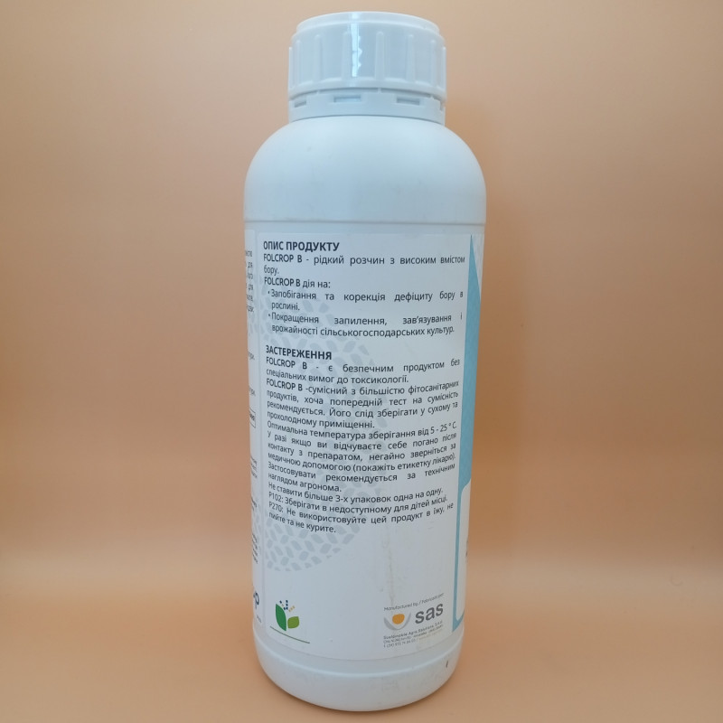 Фолкроп Бор - препарат для усунення дефіциту бору. Після використання препарату поліпшується запилення, зав'язь і загальна врожайність культури. Препарат відрізняється високою засвоюваністю рослинами.