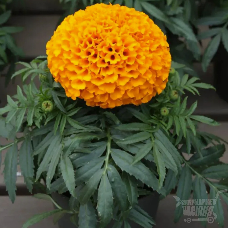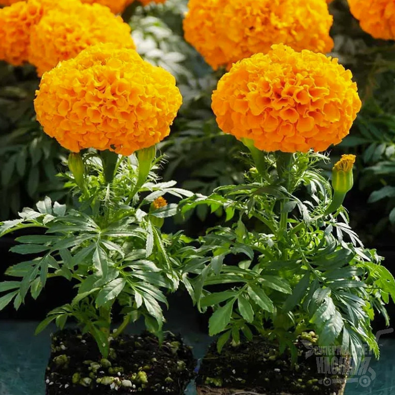 Квітки діаметр 8-10 см, густо махрові, яскраво-жовтого кольору.