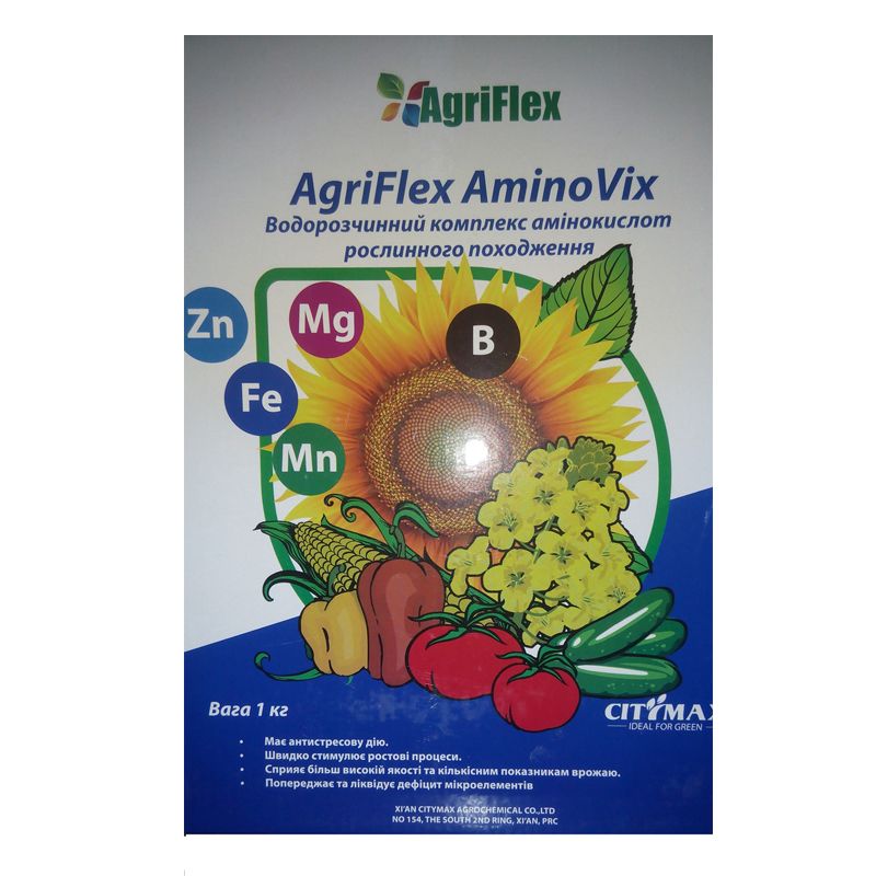 АгріФлекс Аміно Вікс (AgriFlex Amino Vix) - повністю водорозчинний органо мінеральний препарат, що містить суміш мікроелементів і комплекс вільних L-амінокислот. Препарат забезпечує рослини повним спектром мікроелементів, ліквідуючи їх дефіцит.