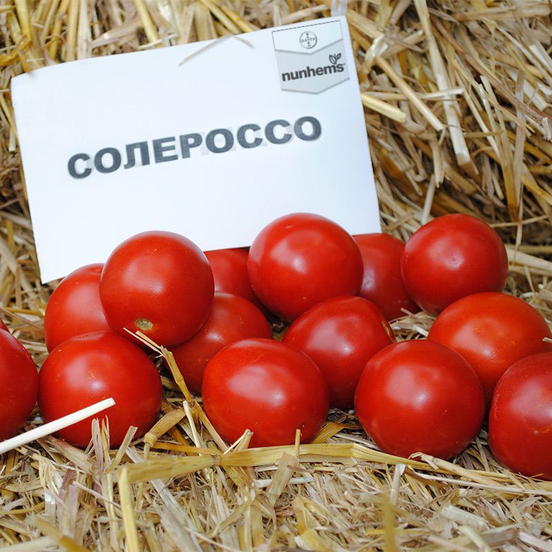 Характеристика плодів – Помідори однорідні, круглі, масою 50-55 г, з насиченим внутрішнім і зовнішнім забарвленням, середньої щільності. За рахунок неперевершеного співвідношення кислот і цукрів у плодах, вони мають відмінні смакові показники. Вміст сухих речовин (Брікс) становить 5,0-5,6%. Підходить для збору врожаю з плодоніжкою.