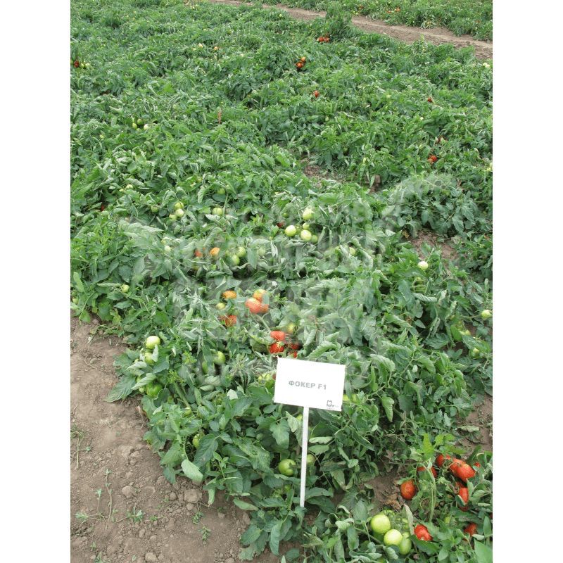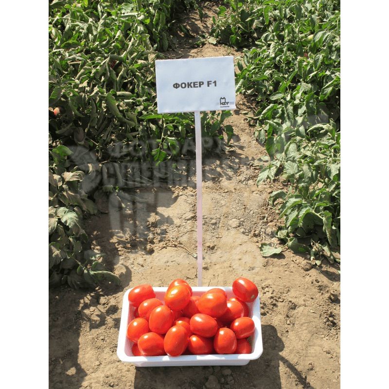 Фоккер F1 насіння томату детермінантного дражоване (Nunhems). Пізній (125-130 днів) гібрид з високою польовою лежкостю. Плоди кубовидно-овальні, щільні, насичено червоні, середньою вагою 75-85 гр, транспортабельні, легко відокремлюються від плодоніжки, тривалий період не перестигають при перестої в поле. Рослина низькоросла, середньооблиствена і тим самим захищає помідори від печения на сонці. Застосування: переробка на томат-пасту, соки і соуси. Рекомендований для вирощування при високому агрофоні, так як показує хорошу зворотну віддачу врожаю. Томат Фоккер F1 адаптований до різних типів за механічним складом грунтів і зонам обробітку. Помідор високотолерантний до нематоди, вертицильозного в'янення, фузаріозу рас 0,1 і бактеріальної плямистості. Рекомендована щільність стояння рослин - 25-35 тис.шт/га.