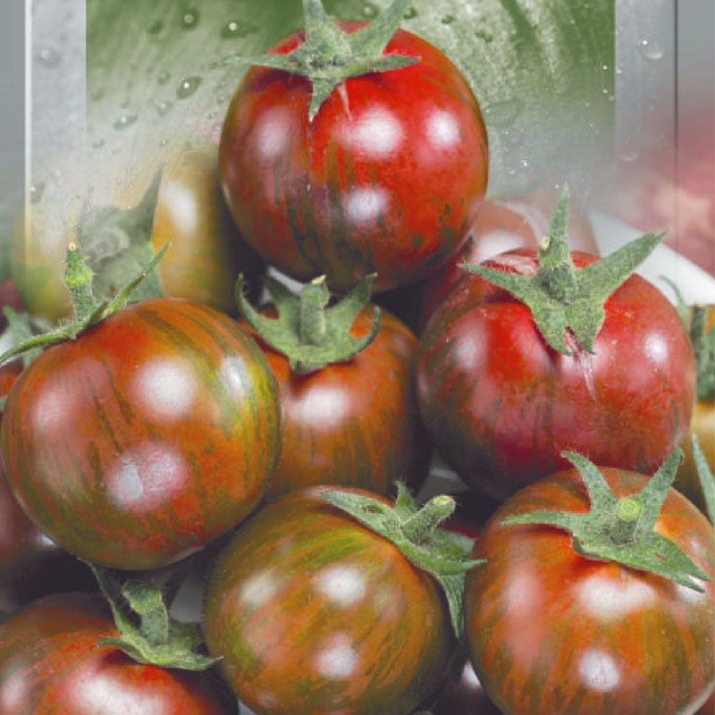 Середньостиглий високоврожайний індетермінантний сорт. Кущ заввишки 1,5 м. Китиця проста, компактна з 5-7 плодами. Томати круглі майже чорні, в буру і темно-зелену смужку, масою 40-60 г. М’якуш дуже щільний. Призначення - універсальне. Урожайність - 15 кг з куща. Стійкий до хвороб.