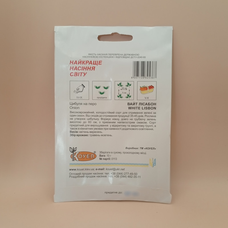 Вайт Лисабон - сорт цибулі на перо. Рослина є холодостійких, високоврожайних. Вегетація - до 45 днів.