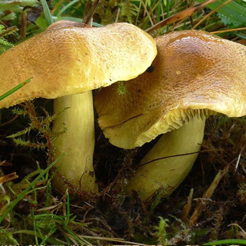 М'ясистий капелюшок зелено-жовтого кольору з жовтувато-бурим центром має хвилясті краї. Її поверхня дуже клейка, тому вона постійно в піщинах і смітті. Саме через це багато грибників не поспішають їх збирати. Вимити весь пісок, щоб він не скрипів на зубах, справа не з легких.